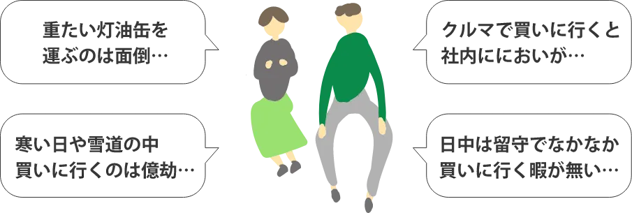 軽油は緑色のポリタンクで貯蔵が可能。青や赤色は灯油用として作られているのが多いため軽油用として作られている緑色のポリ缶を使うように。軽油の貯蔵には200L未満なら特に規制はありませんが危険物のため直射日光を避けて涼しい場所に保管。